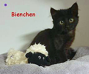 Bienchen war acht Wochen jung und wir konnten es mithilfe unserer Tierärztinnen so stabilisieren, dass es nun gesund und munter ist. Wir haben Bienchen mit Jakob und Jannik und Josie vergesellschaftet, um aus diesen Vieren zwei Katzenpärchen zu machen.